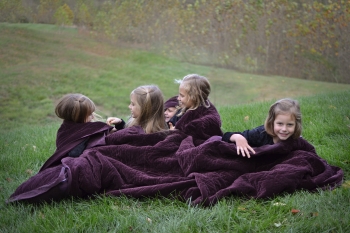 Of Purple Rain. So this year we have a lot of purple in our photo shoot. It just happened that way because of fabric I decided to use up, and a velvet quilt I had here being a perfect color match. What is 'purple rain' anyhow? I looked it up and one definition (although not the definition Prince gives for his song) was a longing for something that is not likely to happen the way it was expected to or hoped for. So maybe that fits this tribute coming from this Mother's heart? Hopefully it is ok for me as a Mother to be honest about what I was thinking might happen. Sarah has no 'Prince' and no children of her own, but she has achieved much that she has sought which really is much more important! And look at all these nieces and nephews! Eight of them! And they all love her so much - you can see by their smiles in these pictures! When she is around they gravitate towards her fun crazy Aunt-ness! I hope you enjoy these pictures of her with each of her nieces and