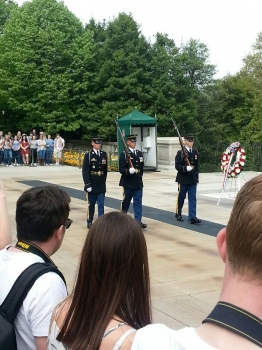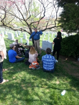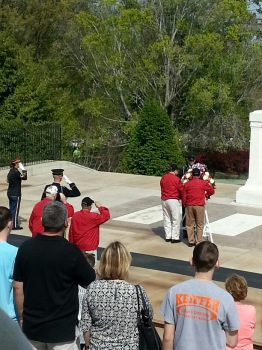 This particular day Bernie led the group around Arlington National Cemetery. The somberness of the day was underscored because it coincided with Good Friday, the day we remember when our Lord was hung on the tree for our sins. One of the many stops in the cemetery was the Tomb of the