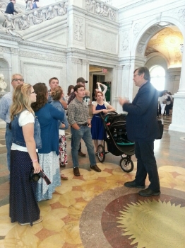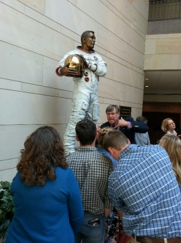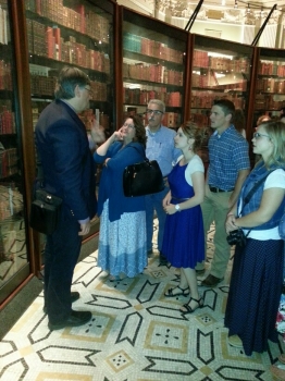 We had a special time when old friends came to tour Washington DC with Bernie and I. Since I was along I snapped a few pictures of Bernie with this family group, doing what he often does in DC, taking the them through the Library of Congress, into Thomas Jefferson's Library, and telling spiritual lessons in front of several statues in the Capital Visitor Center, among other things. This precious family we first met over 10 years ago, and it was wonderful to see them again and hear their stories of faith and hope. And this is only part of their clan, they also have several older children, several of them married, who weren't with them. I am working on my selfies so I included the first pic I tried to take of all of us, where only half the head of the father was showing. :/ I hope you enjoy a better picture of the family, with the capitol dome on the left. It was such a special time to see them again! The last time we saw them many of their children were small, now they are all teen or adults!