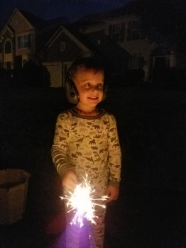 First let me say I am grateful! Grateful that the basement where I fell was a good place to recover, grateful that although our AC died about the same time, Josh and Kerin loaned us a floor unit and we all hung out in the only cool space in the house until it was replaced, so I had lots of company for about two weeks. Grateful that when I did get to the Dr. a week later and discovered it was actually two fractures, I did not need surgery to repair anything, as I found out later can be common with tibea plateau. No screws and plates yay! I am grateful my Dan is so helpful and responds right away, cheerfully, to every texted request. And I am grateful for Bernie to run the errands I usually run to keep the household going and everyone fed. And for running the washer and dryer. (I still get to sort and fold.) :) I am grateful early on Bernie brought down my sewing machine so I could try to finish the project I had started right before I fell. (slipcovers) I am grateful for visits from my family and grandchildren, and having one chance to work with them on the violin. I am grateful I can sit up at the piano and play. I am grateful for a recliner that reclines almost flat. I am grateful for my laptop and smart phone. I am grateful for cards and emails and flowers! I am grateful that a family friend used my ticket to take my place and help supervise six grandchildren at the 'The Sound of Music' staged production at the Kennedy Center. And we are so incredibly grateful for and blessed by the financial support many of you sent that helped so much with all the extra expenses of the air conditioners as well as Dr. bills, x-rays, and PT visits. I am grateful we still celebrated Father's Day and the fourth of July with our children coming here to visit. My children, their spouses, and my grandchildren bring some sparkles to my life - so I had to include a few pictures Kerin took of some of the grands with sparklers when they were here but out of my sight and beyond where I could see them in our driveway.
