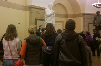 Campus Ministry Opportunities, Too!5. Campus Groups — This photo was taken in the Crypt of the U.S. Capitol with a busload of college students. That’s me in the center next to the statue of Roger Sherman. He was an outspoken Christian who authored an excellent creed for his church. As the only person to sign all four of our founding documents, he helped break a deadlock at the Constitutional Convention by proposing that Congress be bicameral. His tomb says, “He ever adorned the profession of Christianity which he made in his youth and died in the prospect of blessed immortality.” Great words for today's youth! BTW, I typically share from the Founders “in their own words.”